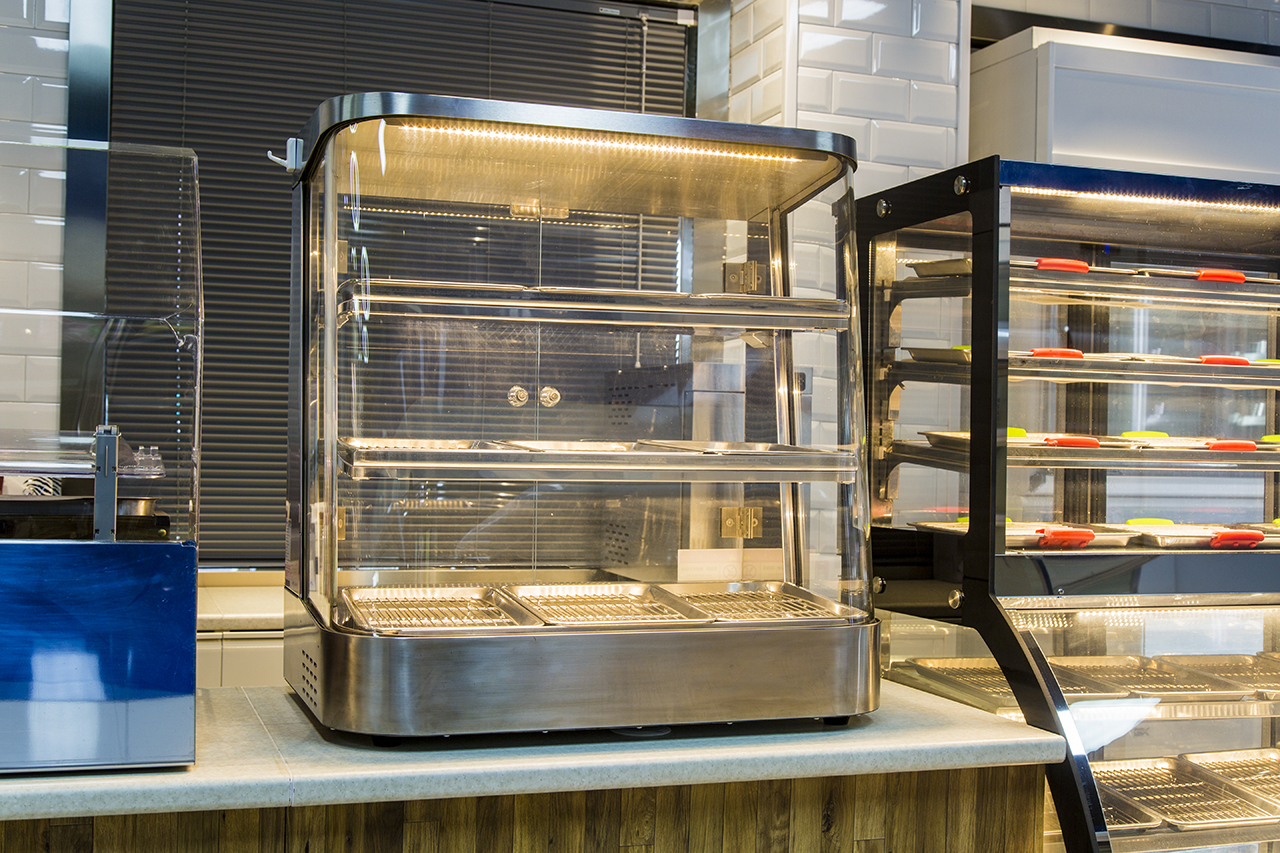 台式保温柜主要用来陈列销售汉堡、炸鸡、热狗等热食。采用弧形玻璃,配有暖色灯光,视觉通透,让商品更具吸引力。 现在便利蜂,全家,7-11,喜市多,Today等客户普遍选用。
