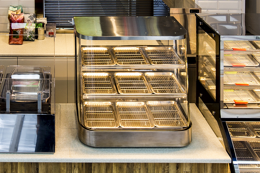 台式保温柜主要用来陈列销售汉堡、炸鸡、热狗等热食。采用弧形玻璃,配有暖色灯光,视觉通透,让商品更具吸引力。 现在便利蜂,全家,7-11,喜市多,Today等客户普遍选用。